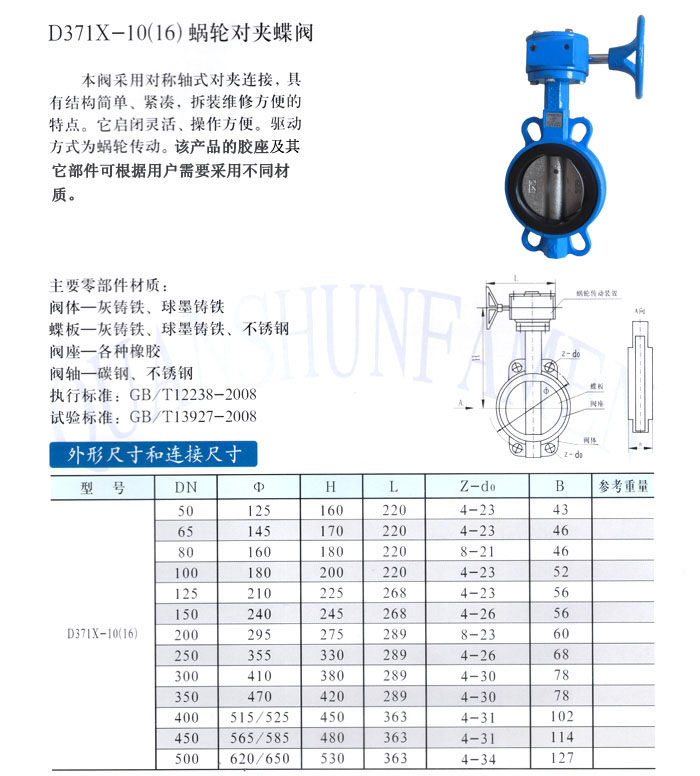 D371X-10(16)蜗轮对夹蝶阀