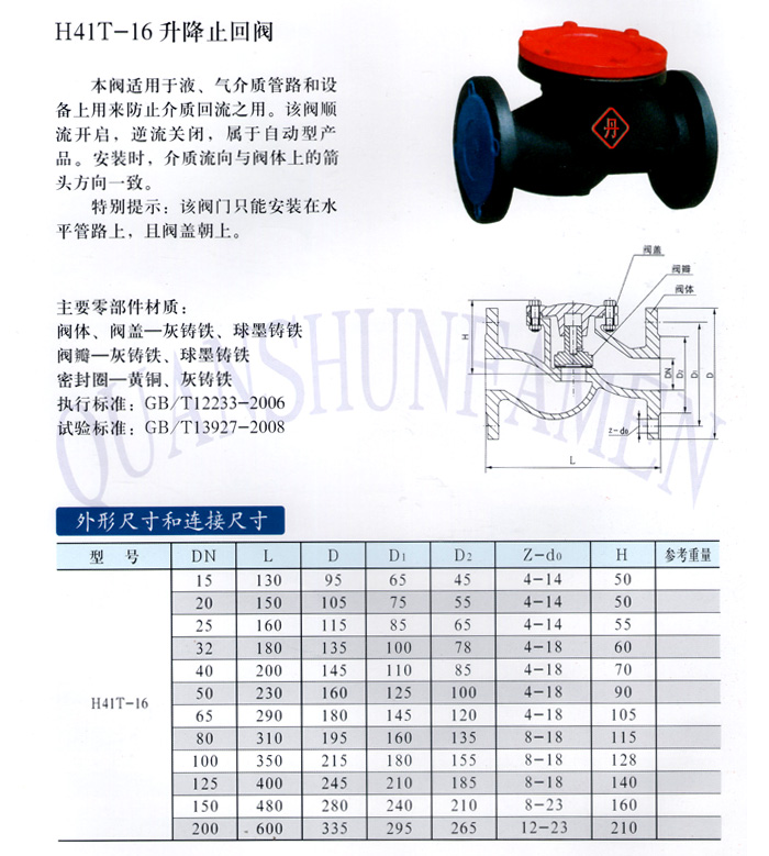 H41T-16 升降止回阀